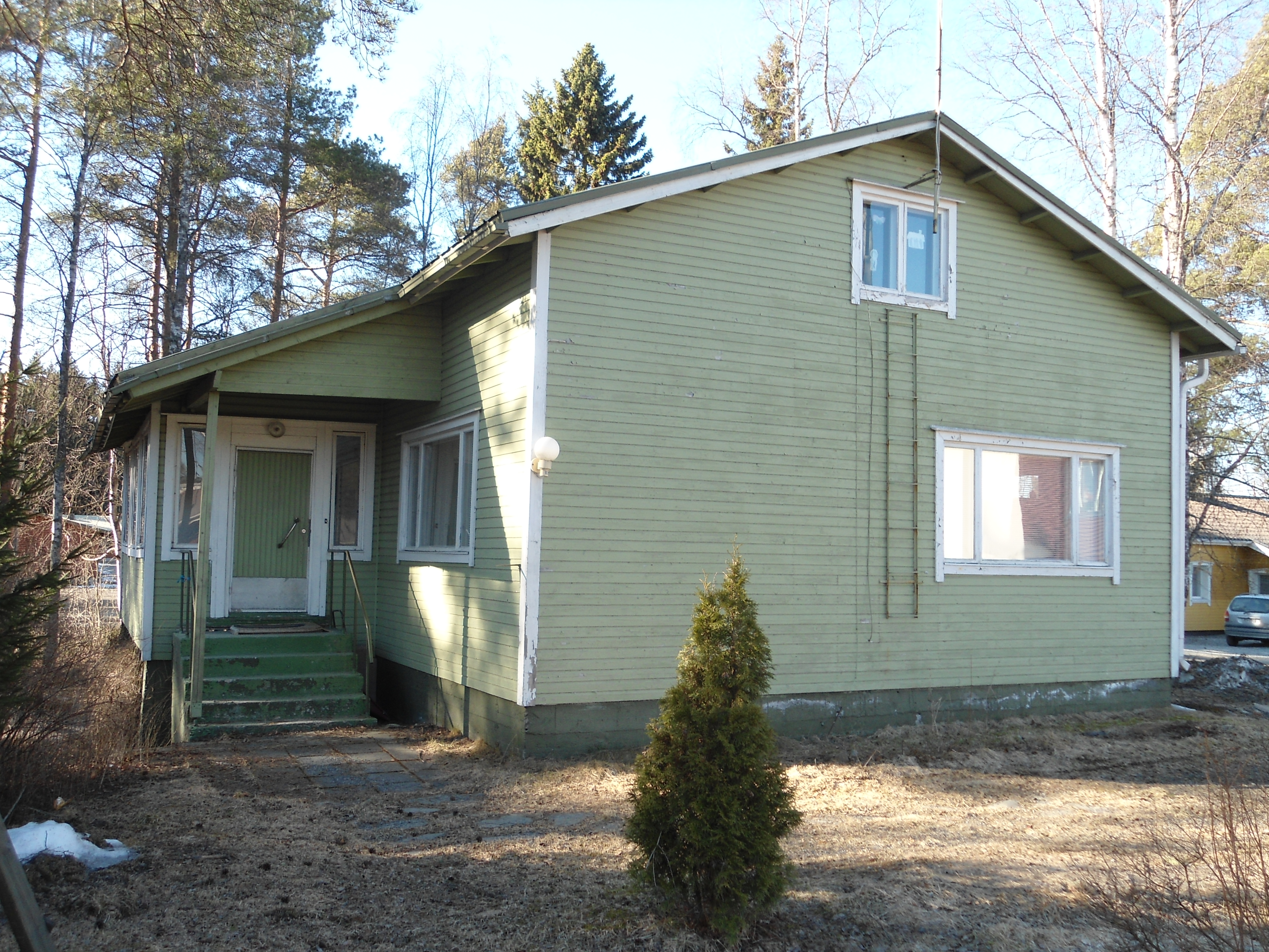 Me asuimme tässä talossa vuodet 1953-1958, jolloin oma talomme valmistui Kallionmäelle, Kirkkoharjuntielle. Meidän asuntoomme muutti sitten Maija Kuosmanen äitinsä kanssa. Maijan jälkeen asuntoihin tehtiin perusremontit ja asennettiin mm. vesijohdot ja tehtiin sisävessat. Asunnossa on asuneet sen jälkeen mm. Partaset, Tane ja Hanna sekä heidän lapset Jaana, Jari ja Sari.