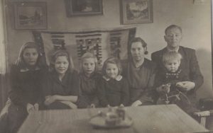 Tuula I 39Janne Ilvonen teki asemalle leikkimökin aseman lapsille. Annikki, Kyllikki, Sanelma ja Veijo sekä Maria Ilvonen, Janne ja äiti. Kuva Tuula Ilvosen kotiarkisto