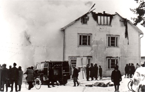 Tien toisella puolella, Värettä vastapäätä, oli Arttu Rissasen autokorjaamo. Siihen liittyy järkyttävä muisto, sillä kerran tämä korjaamo syttyi tuleen. Havahduin iltapimeällä siihen, että tulen lieskat valaisivat huoneen. Pelästys nousi kauhuksi, sillä leveä tuliseinä näytti tulevan ihan päälle. Hetken kuluttua kuitenkin selvisi, että tulipalon loimu heijastui sisään vastapäisen metsän puista. Korjaamo paloi perustuksiaan myöten.