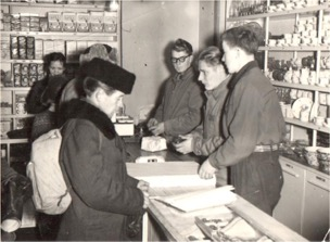 Olin itsekin Jakamon kaupassa joskus apulaisena. Se oli ensimmäinen oikea työpaikkani. Kauppaa lämmitettiin pönttöuuneilla tulikuumaksi, että lämpöä olisi riittänyt hatarassa talossa. Usein olikin sitten tukahduttavan kuumaa. Lapsena oli kiva jäähdytellä silloin kättänsä kylmässä hernesäkissä. Jakamon kaupassa toimi myöhemmin mielenkiintoisia tavaroita myyvä osto- ja myyntiliike Anin Aitta ja sen läheisyydessä jonkinlainen korjaamorakennus, joka myöhemmin paloi.